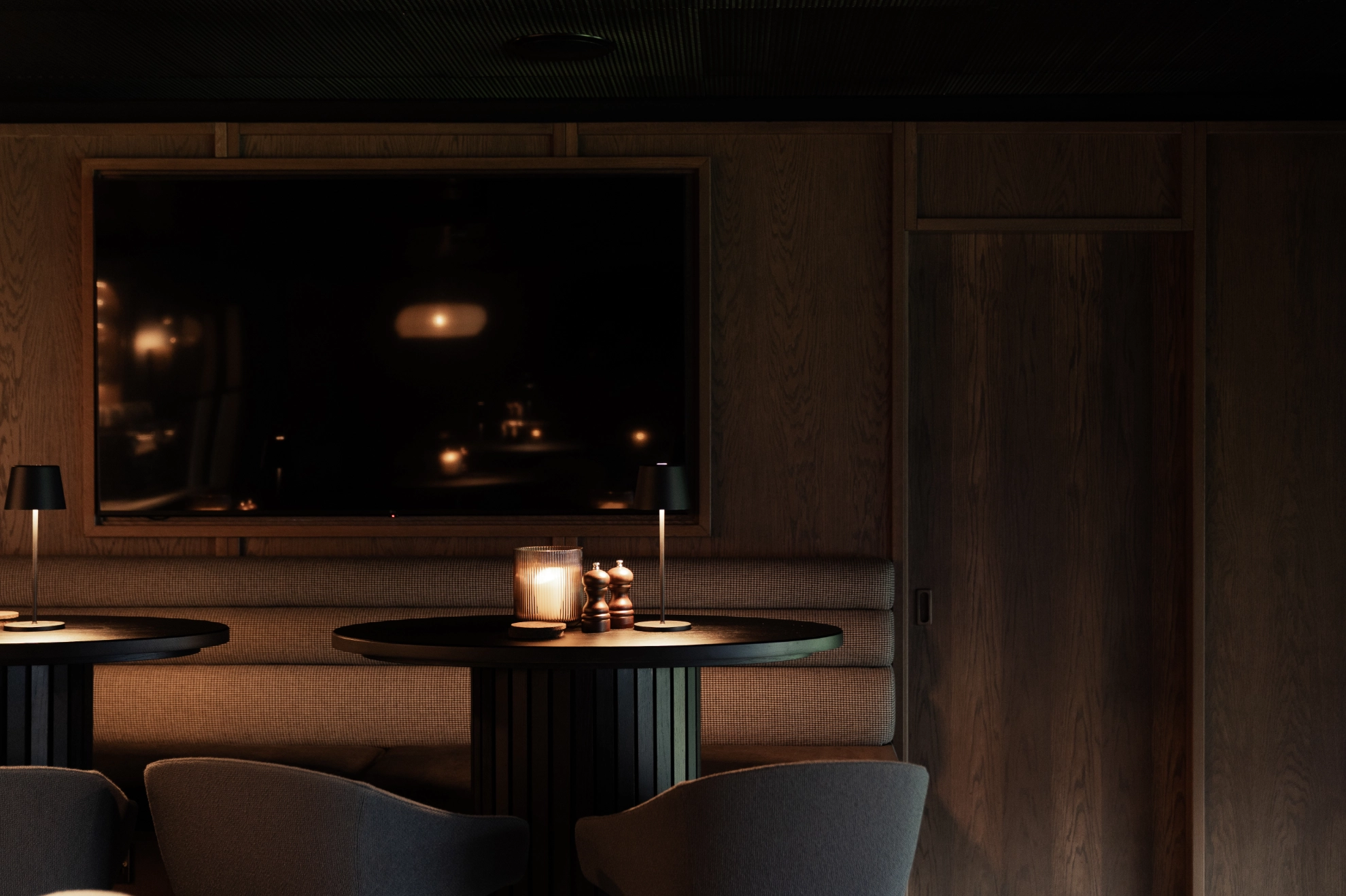Bespoke furniture and premium finishes harmonise with rich textures and a refined palette, while acoustically treated floors and ceilings envelop the space in an intimate ambiance.