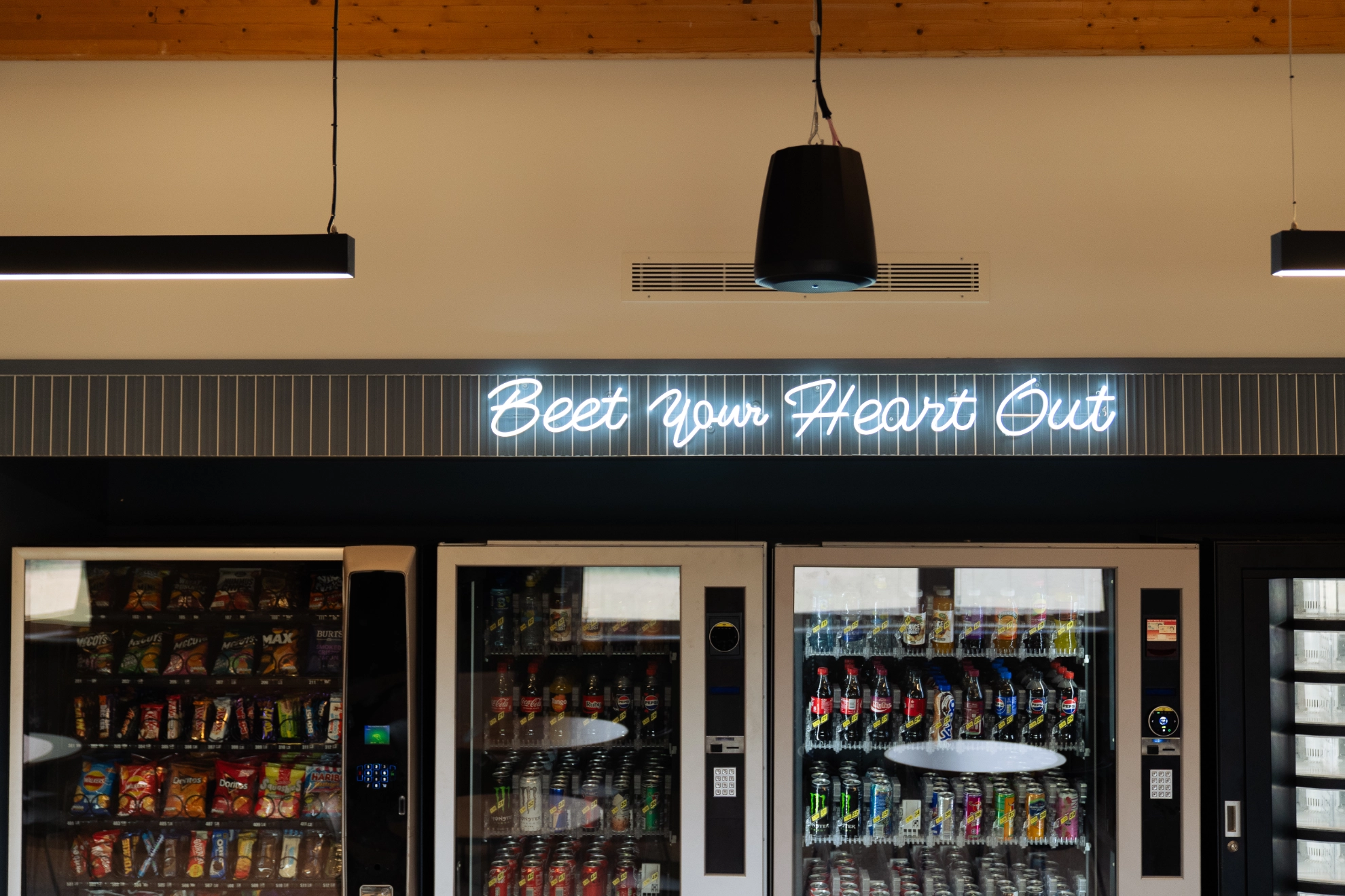 The canteen is now a colourful, flexible breakout area, a space where employees can relax, share meals, and enjoy moments of calm. A newly expanded kitchen supports food preparation, while vending machines are neatly housed within a blue tiled feature wall.