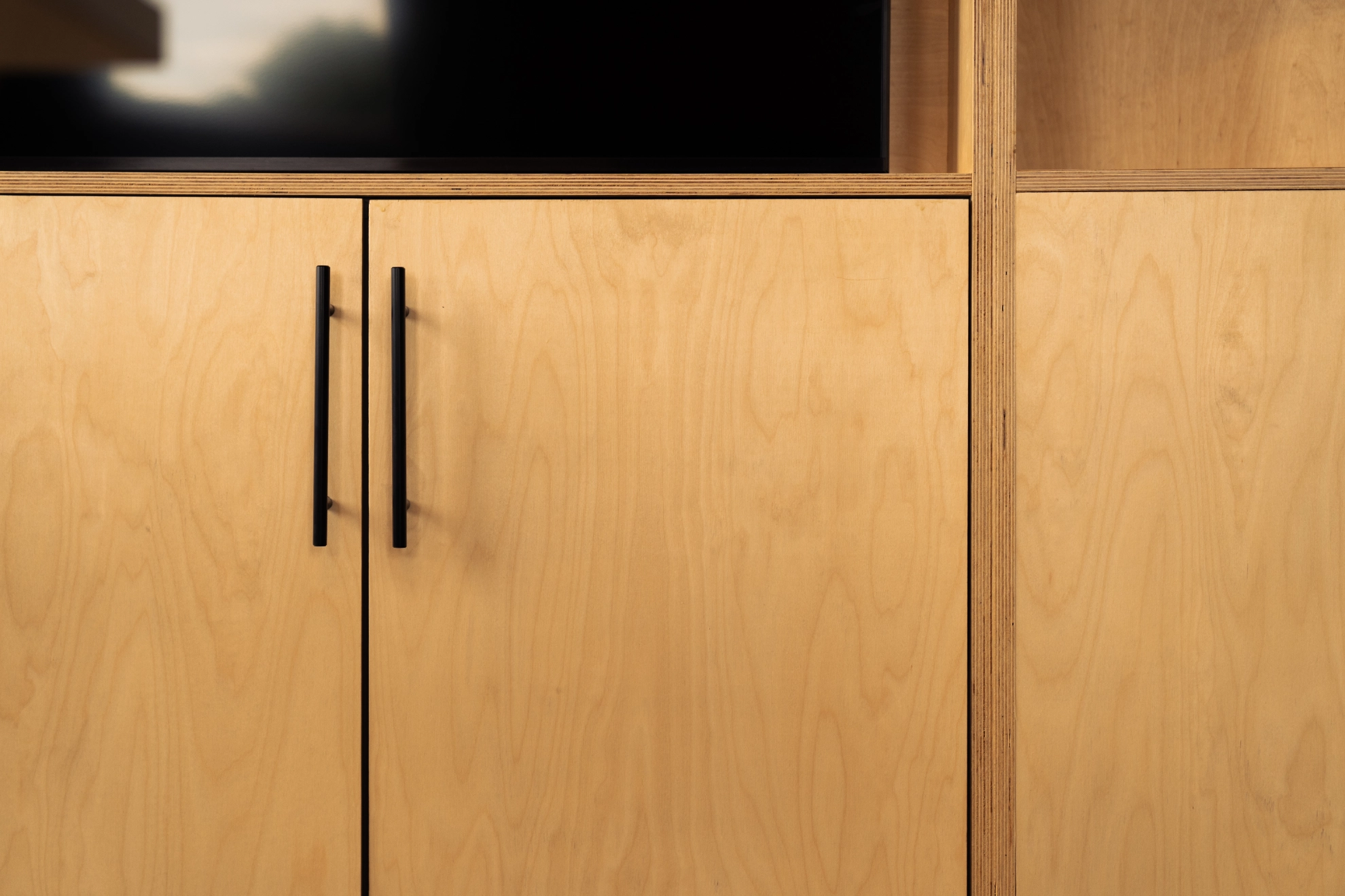 The palette draws from G’s roots: deep beetroot reds, leafy greens and bold blues, balanced with warm plywood tones and natural finishes. Making the space authentic, warm and welcoming.